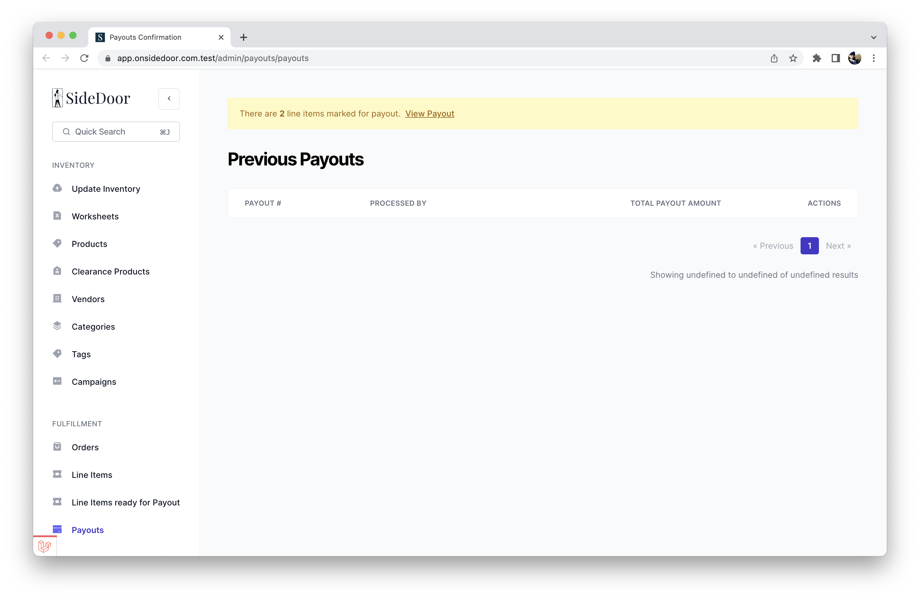 Here is a brief overview of the screens we have developed for sending out the payouts.